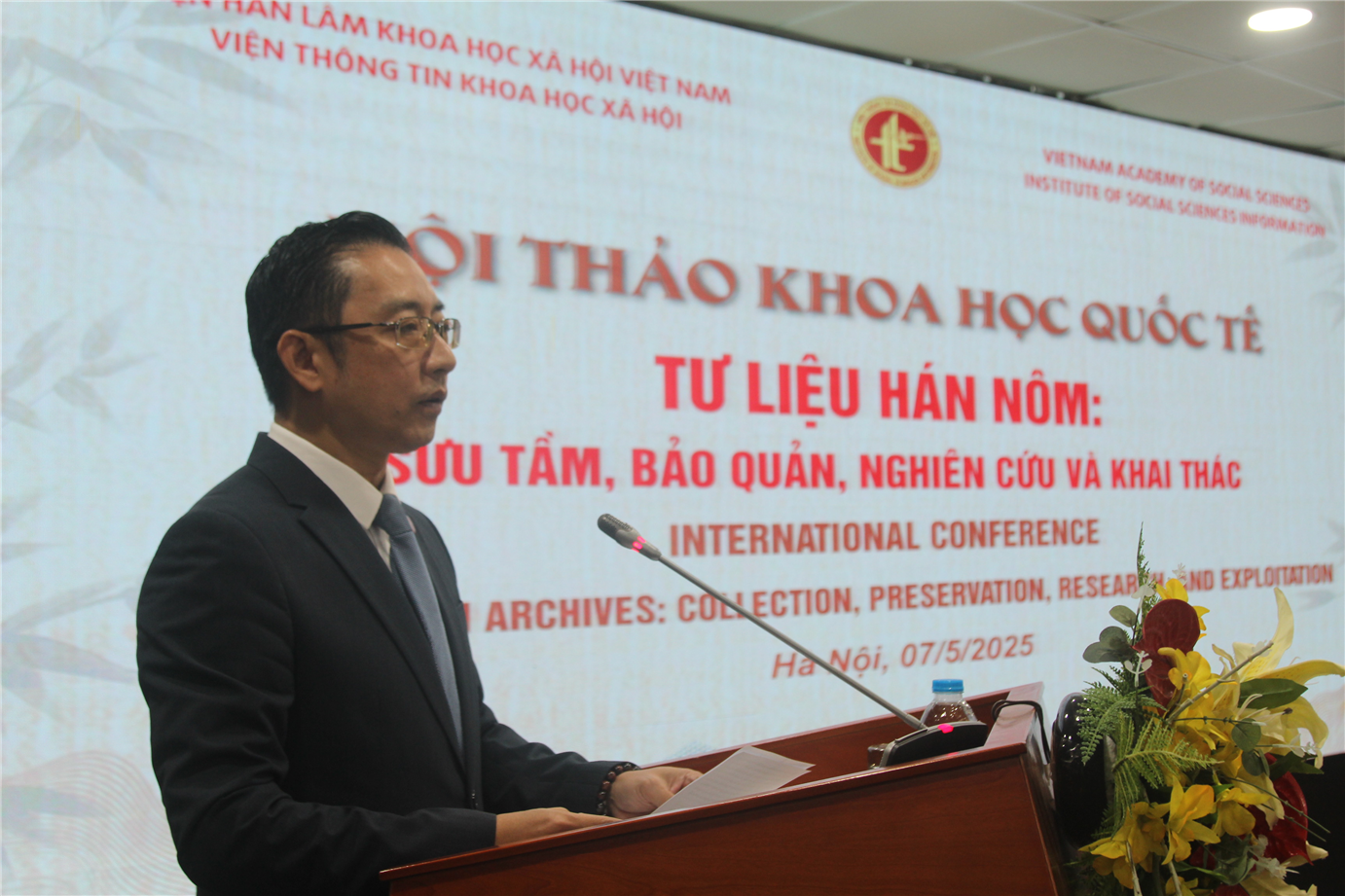 Phát biểu khai mạc Hội thảo, PGS.TS. Tạ Minh Tuấn, Phó Chủ tịch Viện Hàn lâm nhiệt liệt chúc mừng sự hiện diện của các đại biểu, khách quý trong và ngoài nước đã có mặt tham dự Hội thảo. Phó Chủ tịch Tạ Minh Tuấn cho biết: Từ những ngày đầu thành lập cách đây 72 năm, Viện Hàn lâm đã đề cao công tác sưu tầm, lưu trữ, bảo quản và gần đây nhất là vấn đề số hóa tư liệu để tăng cường năng lực phục vụ độc giả trong nước và quốc tế. Hệ thống các thư viện thuộc Viện Hàn lâm hiện đang quản lý nhiều bộ sưu tập tư liệu quý hiếm bằng các ngôn ngữ khác nhau, trong đó có kho tư liệu Hán Nôm. Vì vậy, sáng kiến kết nối giữa Viện Thông tin với Viện Nghiên cứu Văn Triết Trung Quốc (thuộc Viện Nghiên cứu Trung ương Đài Loan), Viện Nghiên cứu Hán Nôm và Viện Triết học (thuộc Viện Hàn lâm) để tổ chức Hội thảo quốc tế “Tư liệu Hán Nôm: sưu tầm, bảo quản, nghiên cứu và khai thác” là một sự kiện rất có ý nghĩa; là một trong những sự kiện quan trọng trong chuỗi các hoạt động trọng điểm hướng tới kỷ niệm 50 năm ngày thành lập Viện Thông tin Khoa học xã hội (8/5/1975-8/5/2025).