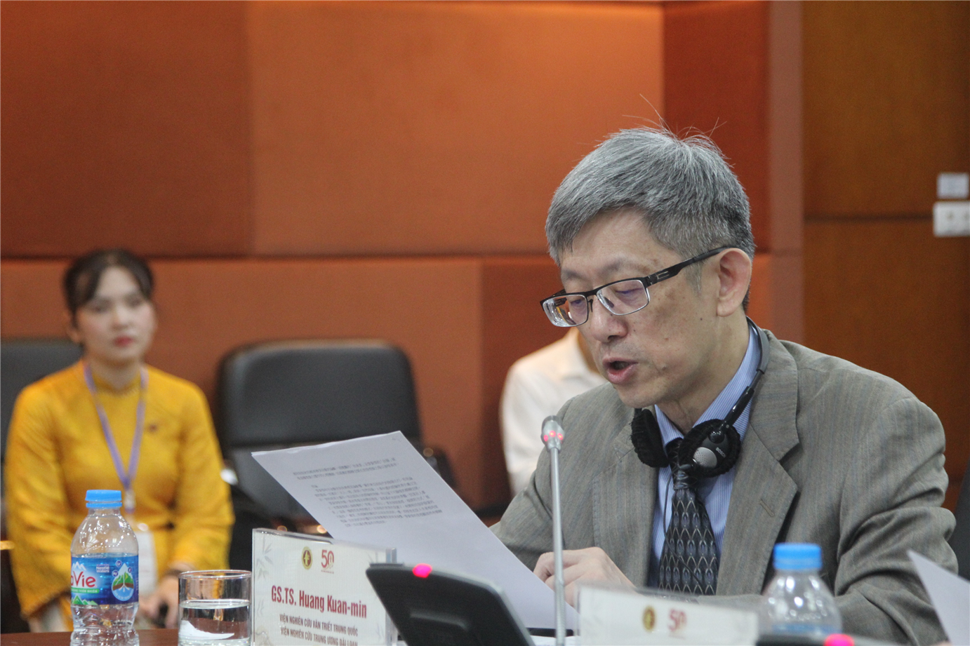 GS.TS. Huang Kuan-min, Viện trưởng Viện Nghiên cứu Văn Triết Trung Quốc phát biểu tham luận tại Hội thảo