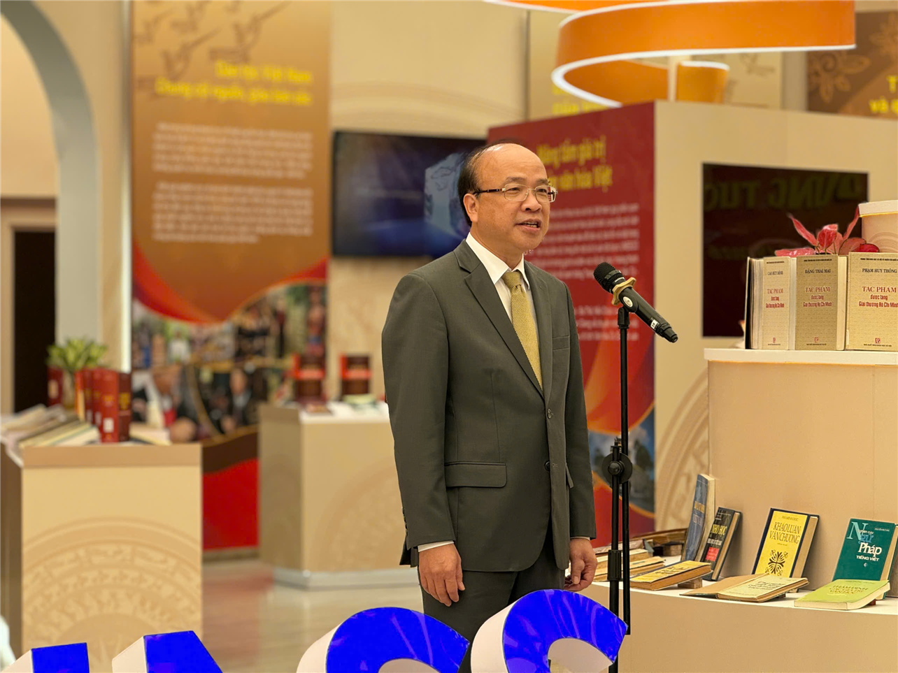 Phát biểu tại buổi lễ, Chủ tịch Viện Hàn lâm TS. Phan Chí Hiếu nhấn mạnh: Với chủ đề “Khoa học xã hội Việt Nam: Tri thức tạo dựng tương lai”, không gian triển lãm của Viện Hàn lâm được bố trí thành 4 phân khu theo dòng chảy tiến trình lịch sử từ cội nguồn, kiến quốc, hội nhập và lan toả hình ảnh Đất nước Việt Nam, văn hoá Việt Nam và giá trị con người Việt Nam ra thế giới. Các trưng bày ở đây chỉ phản ánh một phần nhỏ trong những thành tựu, kết quả đạt được của các thế hệ cán bộ, viên chức, người lao động của Viện Hàn lâm trong 72 năm qua. Thông qua gian trưng bày, những người yêu khoa học xã hội và các tầng lớp nhân dân sẽ hiểu hơn về vai trò, tầm quan trọng của khoa học xã hội và nhân văn; những đóng góp của Viện Hàn lâm cho đất nước.