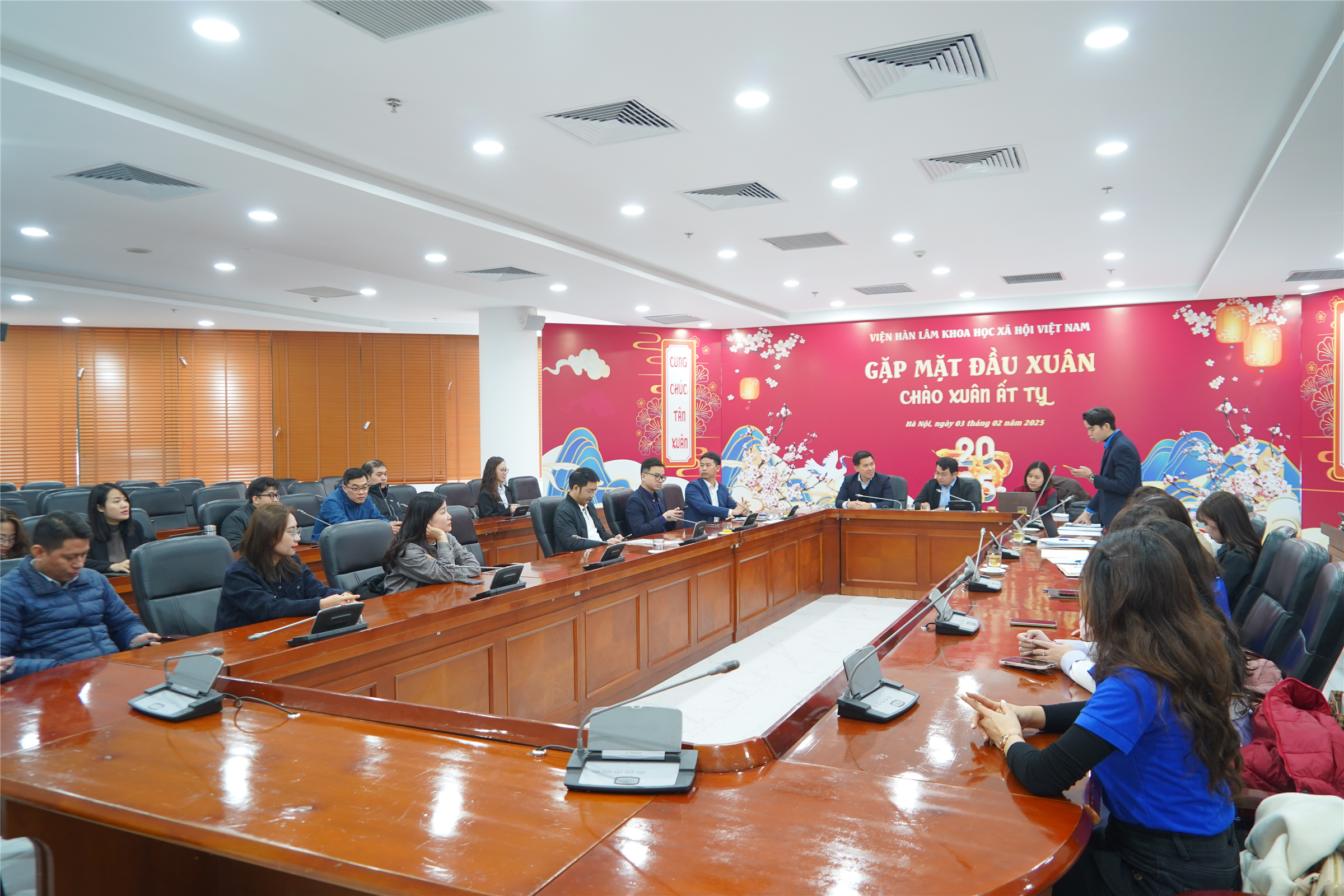 Nhân dịp đầu xuân năm mới Ất Tỵ 2025, thay mặt Ban Thường vụ Đoàn Viện Hàn lâm, đồng chí Bí thư Nguyễn Tuấn Anh đã gửi lời chúc mừng tốt đẹp đến toàn thể các Bí thư và cán bộ chủ chốt các Chi đoàn thuộc và trực thuộc Đoàn Viện Hàn lâm năm mới mạnh khỏe, hạnh phúc cùng đoàn kết vượt qua khó khăn, thách thức, hoàn thành tốt nhiệm vụ được giao, có nhiều đóng góp mới cho công tác chung của Viện Hàn lâm trong thời gian tới. Bí thư Nguyễn Tuấn Anh mong muốn, các đồng chí sẽ đóng góp nhiều ý kiến thiết thực cho Chương trình kế hoạch hoạt động Đoàn năm 2025 một cách thiết thực, hiệu quả, bám sát nhu cầu, nguyện vọng chính đáng của thanh niên cũng như phù hợp với tình hình chung của Viện Hàn lâm.