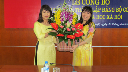 Trước khi công bố Quyết định thành lập Đảng bộ cơ sở Học viện Khoa học xã hội, thay mặt Thường vụ Đảng ủy Viện Hàn lâm Khoa học xã hội Việt Nam, ThS. Lê Thị Hải Nam – Chánh Văn phòng Đảng ủy Viện Hàn lâm KHXH Việt Nam đã công bố Quyết định khen thưởng của Đảng ủy Khối các cơ quan Trung ương với nội dung Chi Bộ Học viện Khoa học xã hội 3 năm liền đạt tiêu chuẩn Chi bộ trong sạch – vững mạnh. Tiếp đó, thay mặt Thường vụ Đảng ủy Viện Hàn lâm, ThS. Lê Thị Hải Nam công bố Quyết định thành lập Đảng bộ Học viện KHXH trên cơ sở kiện toàn lại tổ chức Chi bộ Học viện KHXH trực thuộc Đảng bộ Viện Hàn lâm Khoa học xã hội Việt Nam. Đảng bộ Học viện Khoa học xã hội là loại hình đảng bộ cơ sở. Quyết định đã chỉ định Ban Chấp hành Đảng bộ Học viện Khoa học xã hội, nhiệm kỳ 2010 – 2015 gồm 07 đ/c: 1. đ/c Hồ Việt Hạnh, Phó Giám đốc Học viện KHXH, Bí thư Đảng ủy; 2. đ/c Hồ Sỹ Sơn, Phó Giám đốc Học viện KHXH, Phó Bí thư Đảng ủy; 3.đ/c Nguyễn Thị Song Hà, Phó Trưởng khoa Khoa Dân tộc học, Phó Bí thư Đảng ủy; 4. đ/c Đinh Thị Mai, Phó Trưởng phòng Phòng Quản lý Khoa học, Đảng ủy viên; 5. đ/c Vũ Mạnh Toàn, Phó Trưởng phòng Phòng Biên tập – Trị sự, Đảng ủy viên; 6. đ/c Võ Hồng Nam, Phó Trưởng phòng Phòng Quản lý Đào tạo, Đảng ủy viên; đ/c Trần Minh Đức, Phó Trưởng đại diện cơ sở Học viện KHXH tại Đà Nẵng, Đảng ủy viên.