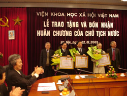 Ngày 02 tháng 01 năm 2009, Viện Khoa học xã hội Việt Nam đã tổ chức Lễ trao tặng và đón nhận Huân chương của Chủ tịch nước cho 16 đồng chí nguyên là cán bộ chủ chốt của Viện qua các thời kỳ.