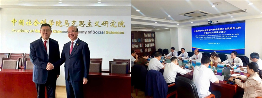Sau đó, đoàn tham dự Tọa đàm khoa học tại Viện Nghiên cứu Chủ nghĩa Mác thuộc CASS với chủ đề: “Những phát triển lý luận mới của hai Đảng và thúc đẩy xây dựng cộng đồng chung Việt Nam - Trung Quốc có ý nghĩa chiến lược”. Tại đây, các học giả Trung Quốc tập trung trình bày về mô hình hiện đại hóa kiểu Trung Quốc, cải cách doanh nghiệp nhà nước, chính sách thuế và lý luận “văn minh sinh thái” của Chủ tịch Tập Cận Bình. Phía Viện Hàn lâm chia sẻ kinh nghiệm thực tiễn của Việt Nam trong việc tinh gọn bộ máy nhà nước, thúc đẩy phát triển kinh tế tư nhân, khoa học - công nghệ và chuyển đổi số. Hai bên cũng trao đổi thẳng thắn về các lĩnh vực hợp tác tiềm năng như kết nối chuỗi cung ứng, logistics biên giới, phát triển khu hợp tác kinh tế và xây dựng cộng đồng chung tương lai Việt - Trung.