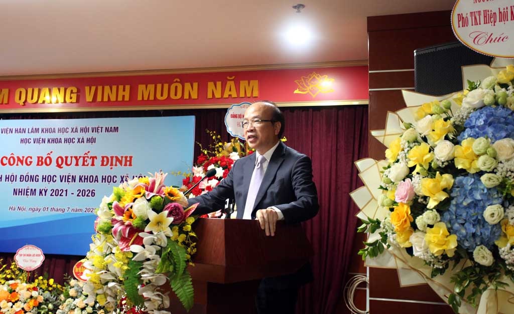 TS. Phan Chí Hiếu, Bí thư Đảng ủy, Chủ tịch Viện Hàn lâm Khoa học xã hội Việt Nam phát biểu tại Lễ Công bố Quyết định Chủ tịch hội đồng Học viện