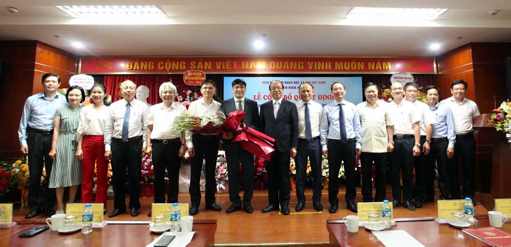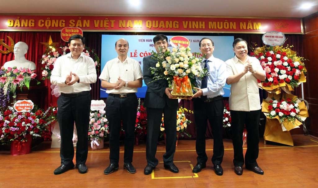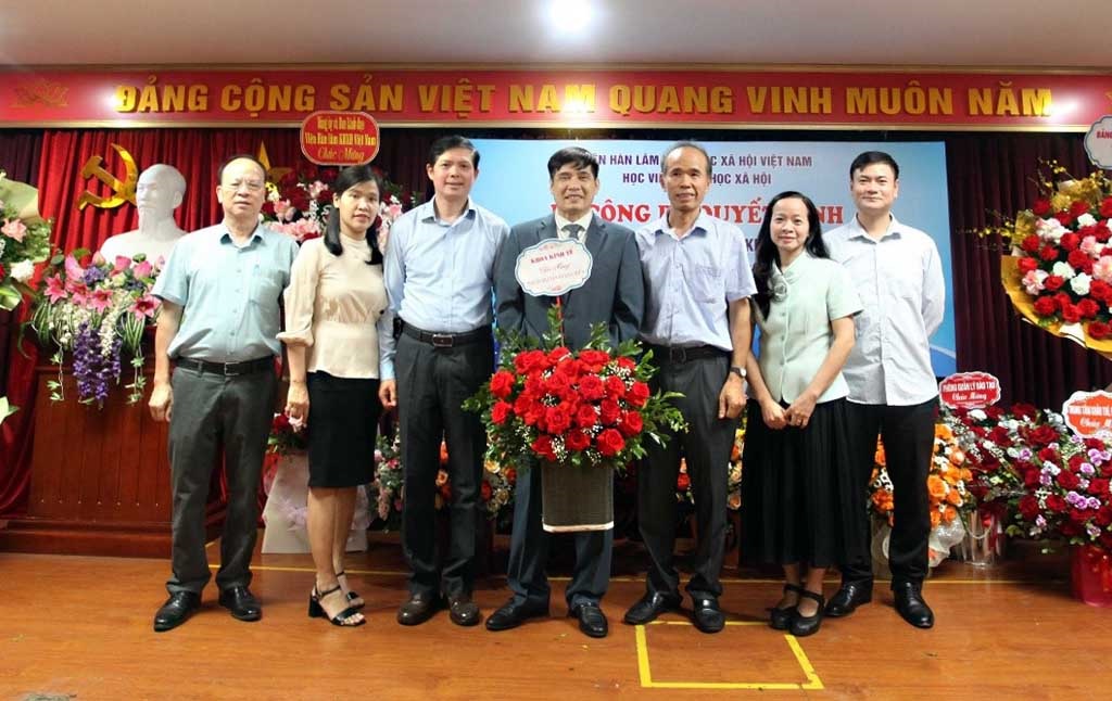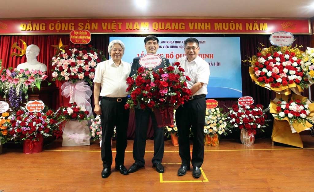 TS. Phan Chí Hiếu, Chủ tịch Viện Hàn lâm KHXH Việt Nam trao Quyết định và tặng hoa chúc mừng Chủ tịch Hội đồng Học viện - PGS.TS. Nguyễn Hoàng Hiển