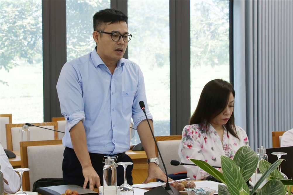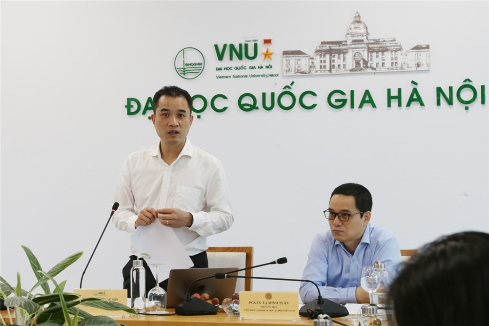 TS. Vũ Tuấn Anh, trình bày Báo cáo tại buổi làm việc (ảnh Hương Giang, Đại học Quốc gia Hà Nội)