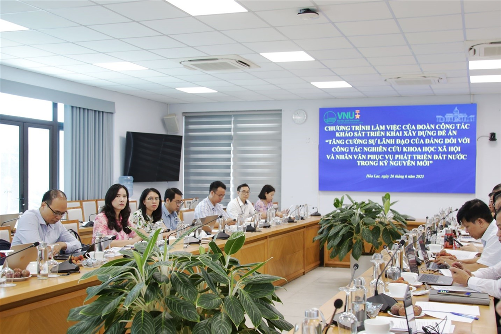 Ngày 26/6/2025, tại Hà Nội, đoàn công tác do PGS.TS. Tạ Minh Tuấn, Phó Chủ tịch Viện Hàn lâm Khoa học xã hội Việt Nam (Viện Hàn lâm) đã có buổi làm việc với Đại học Quốc gia Hà Nội nhằm khảo sát và thu thập ý kiến xây dựng Đề án “Tăng cường sự lãnh đạo của Đảng đối với công tác nghiên cứu Khoa học xã hội và Nhân văn (KHXH&NV) phục vụ phát triển đất nước trong kỷ nguyên mới”.