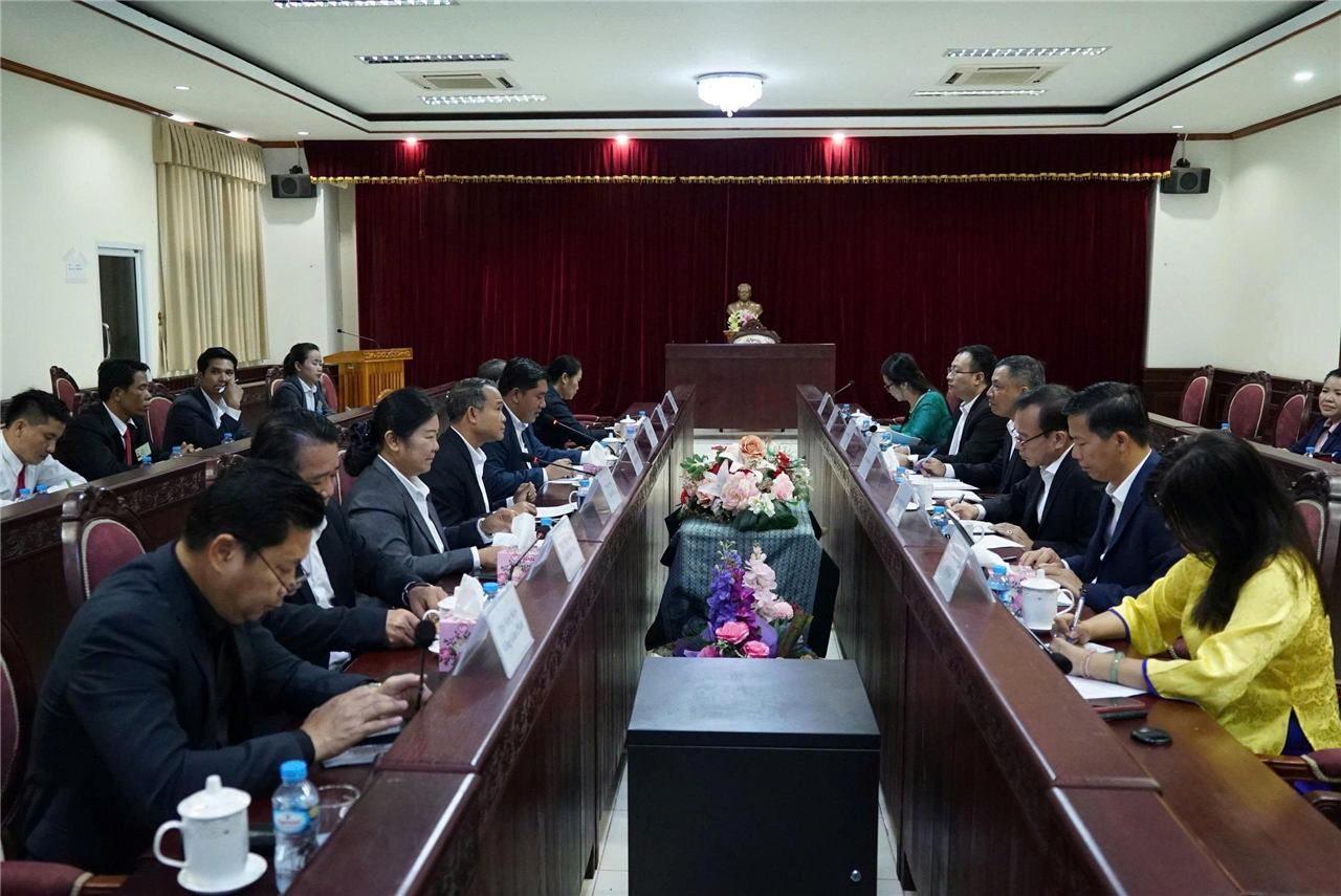 Đoàn chào xã giao TS. Phouvong Ounkhamsane, Ủy viên Trung ương Đảng Nhân dân Cách mạng Lào, Giám đốc Học viện Chính trị Hành chính Quốc gia Lào (NAPPA)