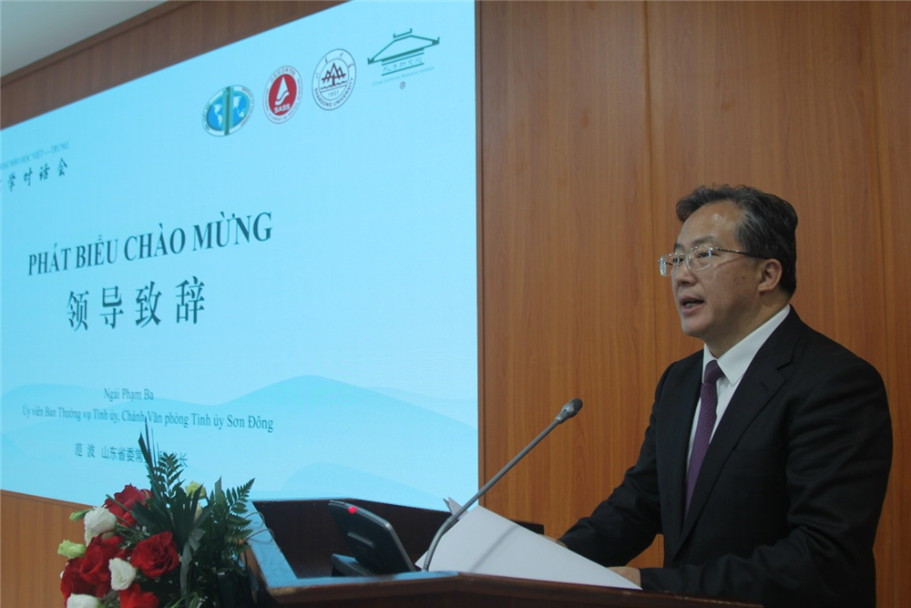 Phát biểu tại Hội thảo, ông Phạm Ba, Ủy viên Ban Thường vụ Tỉnh ủy, Chánh Văn phòng Tỉnh ủy Sơn Đông, Trung Quốc đã đánh giá cao ý nghĩa của Hội thảo trong bối cảnh cả Trung Quốc và Việt Nam đang nỗ lực tổ chức những hoạt động chung hướng về năm “Giao lưu nhân văn Việt – Trung”, mặt khác Hội thảo được tổ chức đúng dịp chuẩn bị kỷ niệm ngày sinh Khổng Tử (28/9). Đây không chỉ là một sự trùng hợp mà còn như là một lời nhắc nhở về việc thế hệ đương đại cùng nhau “nối dài ánh sáng của tư tưởng Khổng Tử” đến với thế hệ hôm nay và mai sau. Việc thúc đẩy các hoạt động giao lưu học thuật để các chuyên gia, nhà khoa học cùng nhau chia sẻ các quan điểm, tìm hiểu các đặc trưng văn hóa, xã hội,… được coi là một trong hướng đi quan trọng để thúc đẩy hợp tác quốc tế, triển khai có hiệu quả các dự án hợp tác, góp phần làm phong phú và tốt đẹp hơn mối quan hệ láng giềng vốn có giữa hai bên.