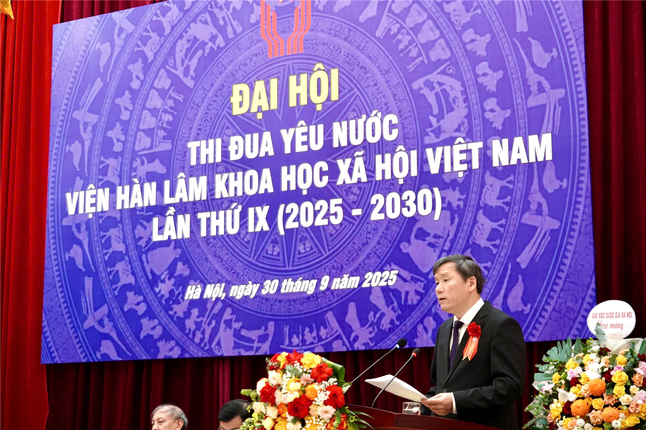 Sáng 30/9/2025 tại Hà Nội, Viện Hàn lâm Khoa học xã hội Việt Nam (Viện Hàn lâm) đã long trọng tổ chức Đại hội Thi đua yêu nước lần thứ IX (2025-2030). GS. TS. Lê Văn Lợi, Bí thư Đảng ủy, Chủ tịch Viện Hàn lâm, Chủ tịch Hội đồng Thi đua – Khen thưởng Viện Hàn lâm dự và phát biểu phát động phong trào thi đua yêu nước giai đoạn 2025-2030. Đại hội Thi đua yêu nước Viện Hàn lâm là sự kiện chính trị quan trọng để tôn vinh, biểu dương các tập thể, cá nhân điển hình tiên tiến trong phong trào thi đua yêu nước giai đoạn 2020-2025, đồng thời xác định phương hướng, nhiệm vụ công tác thi đua, khen thưởng giai đoạn 2025-2030 của Viện Hàn lâm.